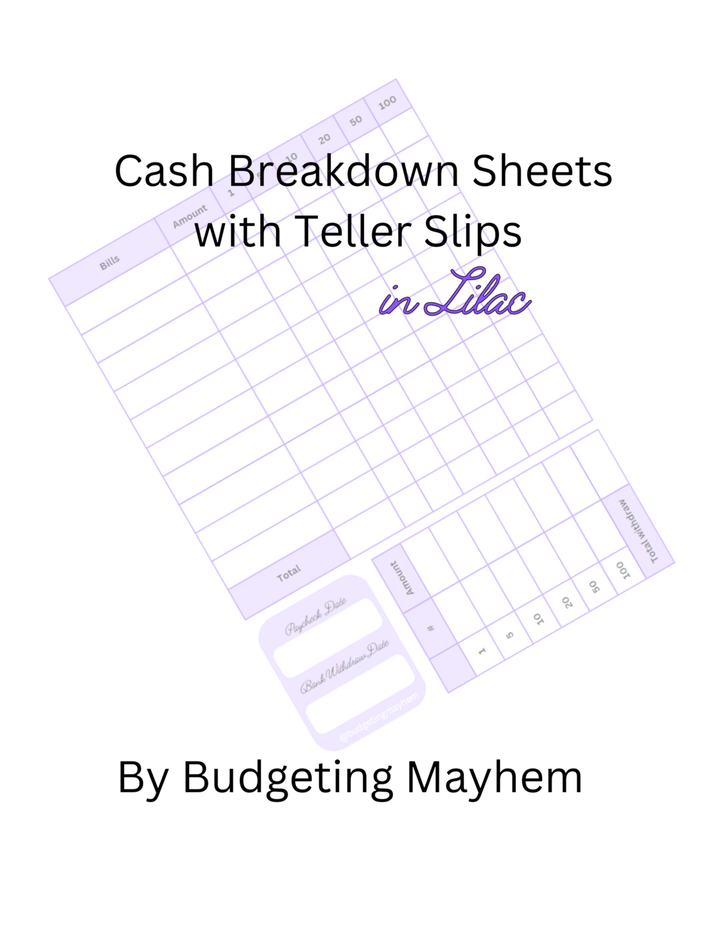Cash Envelope stuffing? This will be the perfect complement to your journey. If you have difficulty figuring out how to ask the teller for the cash a certain way back this Cash Breakdown and Teller slips booklet will assist you with making certain you are on the right take. A beautifully simple layout, the color is up to you, this is in lilac.